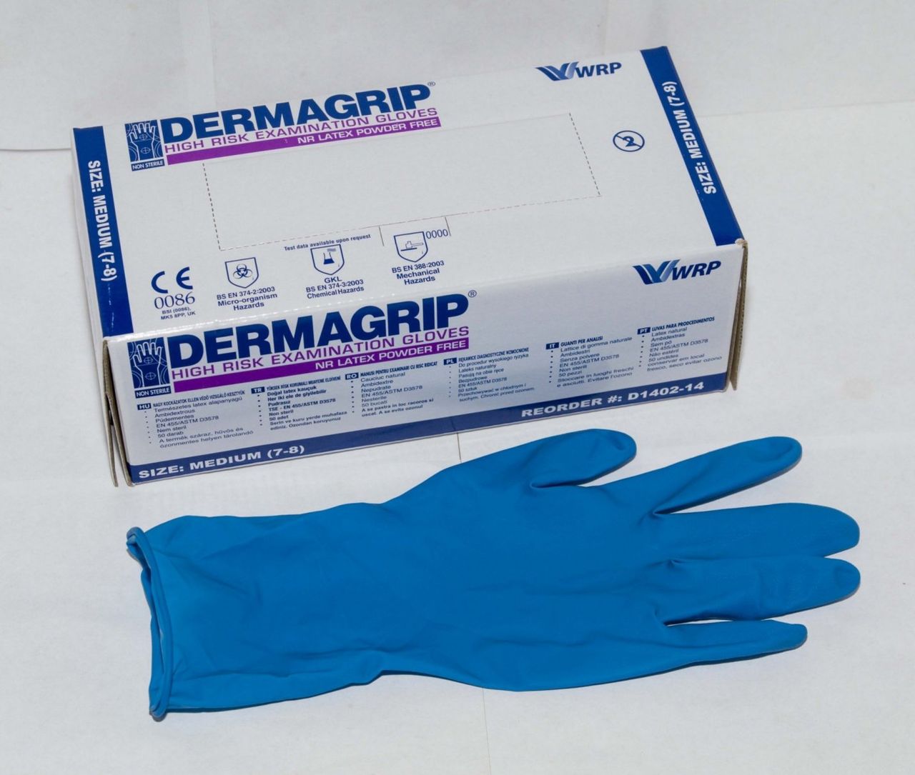 Перчатки DERMAGRIP High Risk синие XL нестерильные латексные