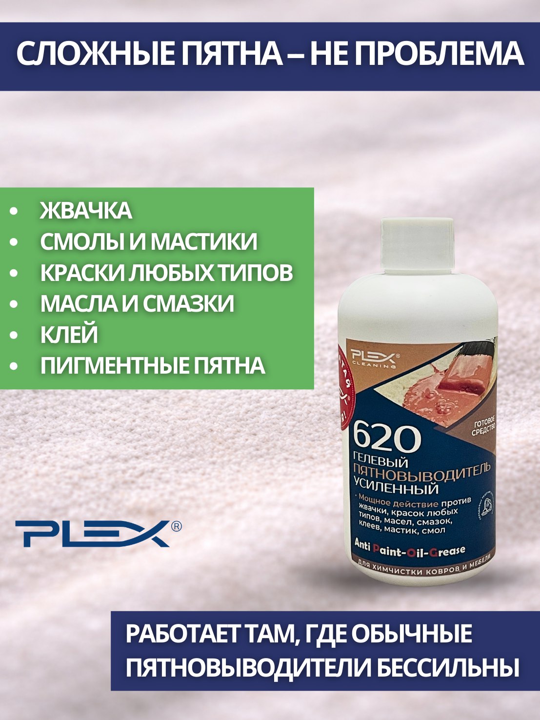 • Мощное действие против жвачки, красок любых типов, масел, смазок, клеев, мастик, смол