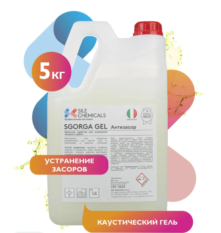 Sile Chemicals: SGORGA GEL Щелочное средство для устранения засоров в трубах 5л.
